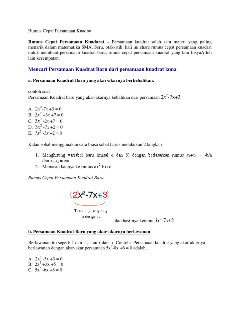 Menentukan Akar Akar Persamaan Kuadrat Dengan Rumus Abc