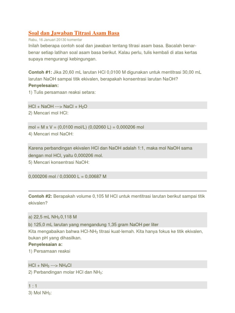 Diantaranya membahas tentang pengertian asam basa perkembangan teori teori asam basa beserta beberapa contoh soal dan pembahasan. Berilah tanda silang x pada hu. Perhatikan keterangan di bawah. 1menurut arrhenius h2o bersifat netral karena. Berikut ini adalah contoh soal disertai dengan pembahasannya mengenai asam basa. Jumat 17 maret 2017 kimia analitik.