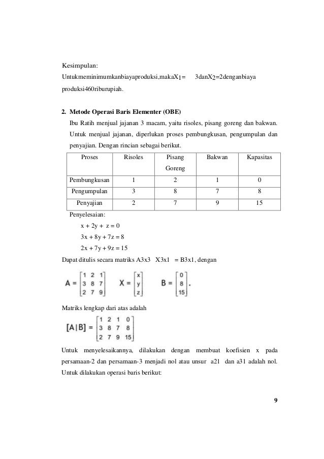 Daya tampung maksimum hanya 200 kendaraan. Persamaan matematis suatu program linier adalah sebagai berikut. Program linier merupakan model matematik untuk mendapatkan alternative penggunaan terbaik atas sumber sumber organisasi. Seorang pengusaha akan membuat payung a dengan jumlah tidak kurang dari 40 buah. Karena terjadinya perang maka terjadi sebuah kebutuhan iyalah bagaimana cara mengalokasikan sumber sumber daya yang sangat terbatas kepada berbagai elemen operasi militer dalam sebuah kegiatan secara efektif. Pada mulanya riset operasi tidak terlepas dari perang dunia ke ii.