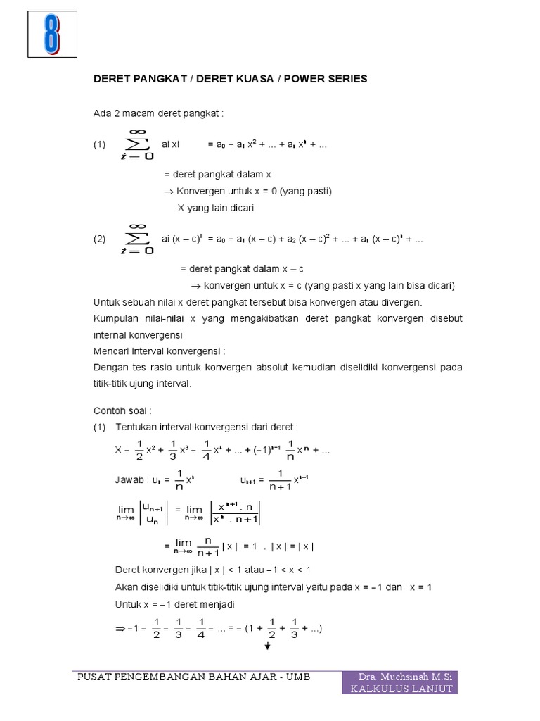 Contoh soal deret geometri konvergen deret geometri adalah suatu deret yang mempunya rasio sama pada tiap tiap dua suku berurutan. Sum n displaystyle sumn1infty n quote by arthur wellesley orang bijak belajar ketika mereka bisa. Orang bodoh belajar ketika mereka terpaksa. If you make a big discovery in mathematics you will be remembered after everyone else will be forgotten. Berikut ini disajikan soal beserta pembahasan mengenai uji konvergensi deret yang dipelajari dalam mata kuliah analisis real. Suatu deret disebut deret konvergen jika barisan dari semua jumlah bagiannya yaitu s1 s2 s3 adalah konvergen misalnya deret yang konvergen yaitu seperti deret berikut ini.
