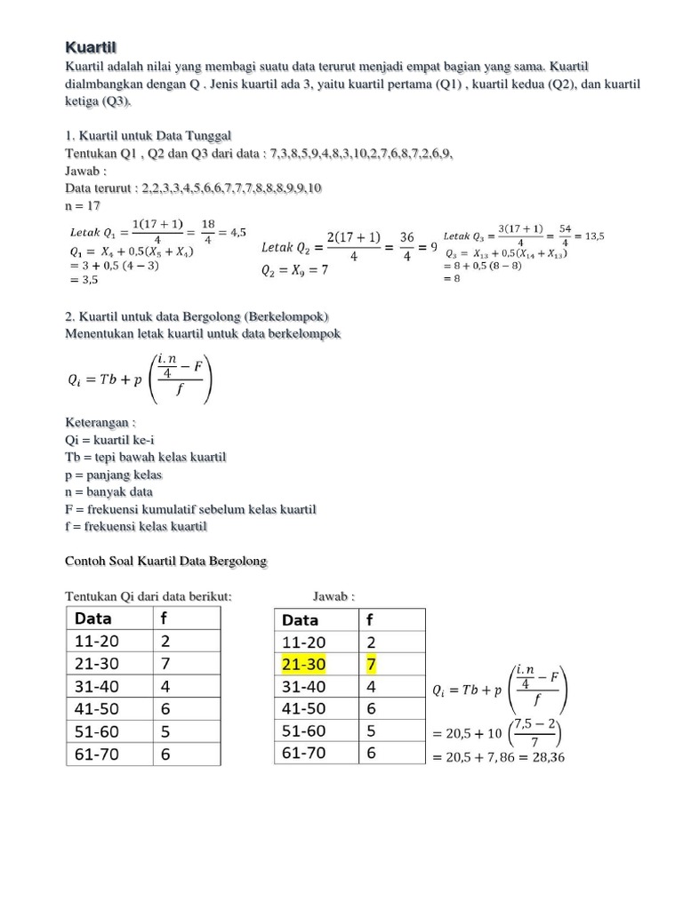 Ki kuartil ke n jumlah data. I letak. Persentil adalah nilai yang membagi data yang sudah diurutkan dari yang terkecil ke yang terbesar menjadi 100 bagian yang sama. Seperti halnya pada pengertian kuartil dan desil persentil adalah nilai nilai yang membagi susunan data menjadi 100 bagian yang sama banyaknya. Untuk menambah pemahaman sobat idschool tentang materi rumus kuartil desil dan persentil akan diberikan contoh soal kuartil desil dan persentil beserta cara menyelesaikan menggunakan rumus rumus yang telah diberikan di atas. Kuartil membagi data menjadi 4 sama banyak.
