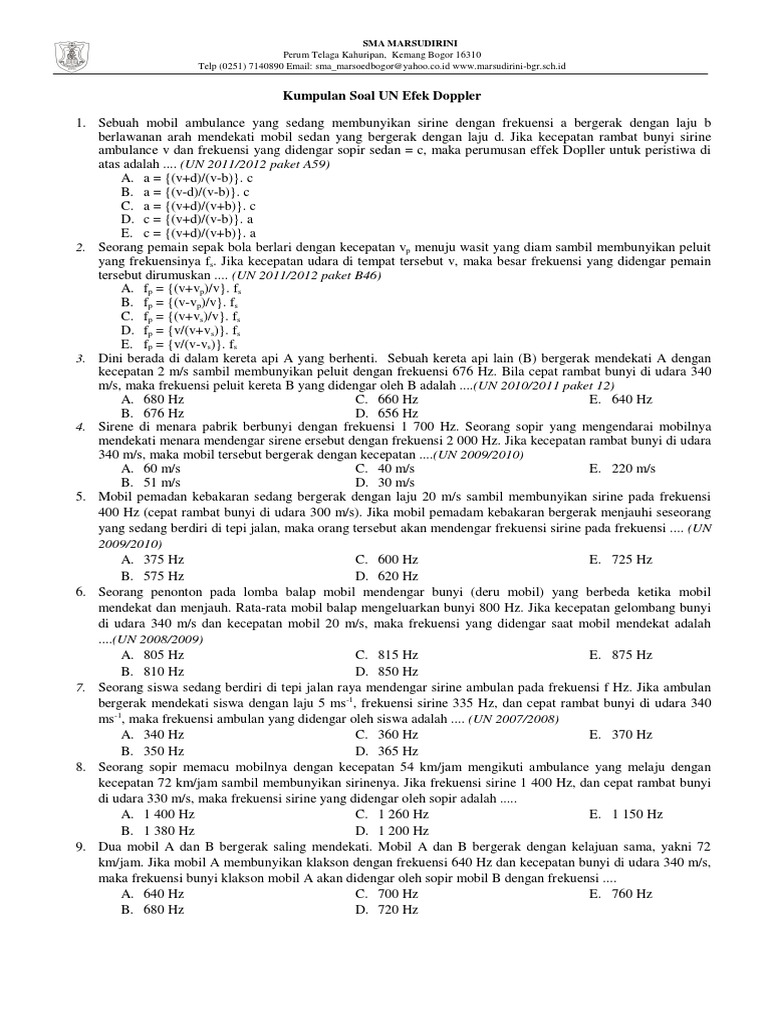 Contoh soal efek doppler. Sebuah mobil polisi membunyikan sirenenya dan bergerak melalui kamu yang sedang diam dengan kecepatan 72 kmjam. Kecepatan bunyi di udara 340 ms. Contoh soal efek doppler dan pembahasan contoh soal 1. Jika sebuah sumber dan pengamat sama sama bergerak saling mendekat. Apabila cepat rambat bunyi di udara 360 ms maka frekuensi klakson yang didengar oleh siswa tersebut adalah. Peristiwa ini dapat ditemukan pada gelombang bunyi.