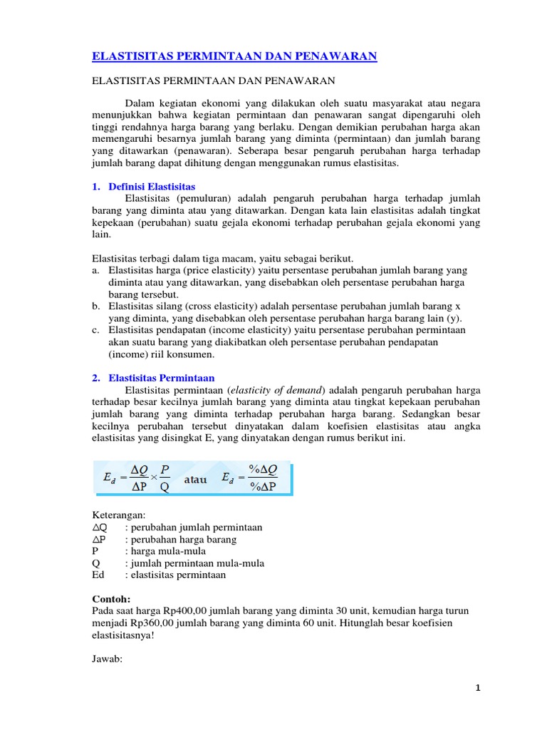 Lengkap Rumus Elastisitas Permintaan Dan Penawaran Contoh Soal