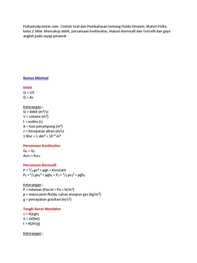 Download rangkuman contoh soal fluida dinamis dalam bentuk pdf klik disini. Pesawat tersebut memiliki luas penampang sayap sebesar 70 m 2jika kecepatan aliran udara di bawah sayap adalah 250 ms dan massa jenis udara luar adalah 10 kgm 3 tentukan kecepatan aliran udara di bagian atas sayap pesawat. Pesawat terbang dapat terangkat ke udara karena kecepatan udara pada sayap bagian atas lebih besar dibandingkan dengan kecepatan udara pada sayap bagian bawah. Contoh kartu soal kisi soal hal 2. Contoh rpp fisika sma kurikulum 2013. Soal 1 gaya angkat yang terjadi pada sebuah pesawat diketahui sebesar 9625 kn.