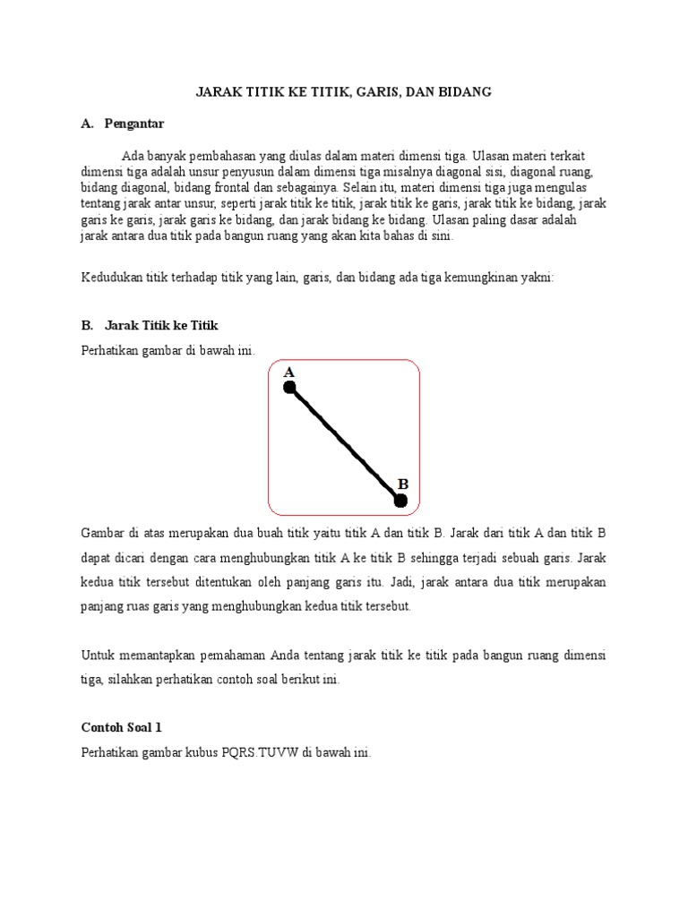 Contoh soal dan pembahasan jarak titik ke titik jika diketahui koordinat letaknya. Untuk memantapkan pemahaman anda tentang jarak titik ke bidang pada bangun ruang dimensi tiga silahkan perhatikan contoh soal berikut ini. Selain contoh soal di atas akan diberi contoh soal cara menentukan jarak antara dua titik pada bangun ruang. Pembahasan materi yang diberikan pada halaman ini adalah dimensi tiga terutama materi jarak titik ke bidang. Cara menghitung jarak titik ke titik garis dan bidangjika sudah paham dengan materinya silahkan simak dan pahami contoh soal di bawah ini. Kerangka bangun ruang rumus luas volume jarak titik ke garis garis ke bidang rumus contoh soal.
