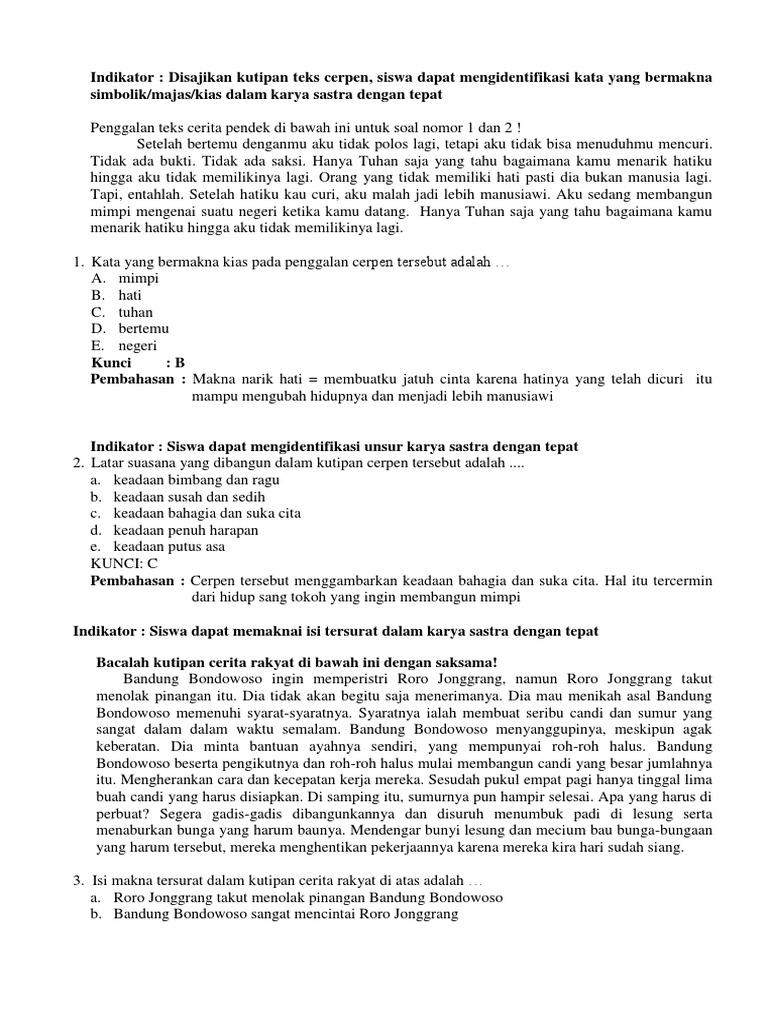 Contoh soal memaknai isi tersurat dalam karya sastra. Bahasa cerpen ciri ciri teks contoh soal un dongeng drama fakta dan pendapat iklan imbuhan kalimat majemuk kamus karya ilmiah kelas ix kelas vii kelas viii kisi kisi un kurikulum 2013 majas materi sma materi soal un musikalisasi puisi novel pantun pidato poster prediksi un sastra siap ujian siap ujian sma sinopsis skkd sd skkd smasmkmamak slogan soal ejaan surat syair tajuk teks anekdot. Mengidentifikasi kata yang bermakna simbolikmajas kias dalam karya sastra google drive 12. Guru sd smp sma soal soal ujian nasional untuk sma memaknai isi tersurat dalam karya sastra. Menyimpulkan isi tersirat dalam cerpennovel klik di sini. Contoh soal dan pembahasan 1. Bahasa cerpen ciri ciri teks contoh soal un dongeng drama fakta dan pendapat iklan imbuhan kalimat majemuk kamus karya ilmiah kelas ix kelas vii kelas viii kisi kisi un kurikulum 2013 majas materi sma materi soal un musikalisasi puisi novel pantun pidato poster prediksi un sastra siap ujian siap.
