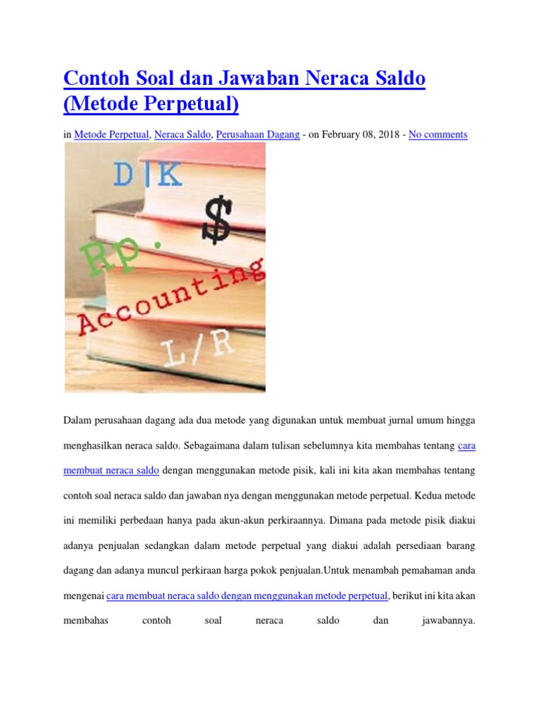 Karena kedua metode ini memiliki perbedaan dalam penjurnalannya. Sebagaimana dalam tulisan sebelumnya kita membahas tentang cara membuat neraca saldo dengan menggunakan metode pisik kali ini kita akan membahas tentang contoh soal neraca saldo dan jawaban nya dengan menggunakan metode perpetual.