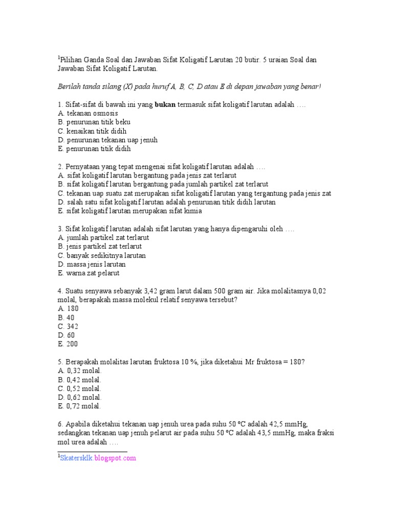 Contoh soal pilihan ganda larutan penyangga dan pembahasannya. Contoh soal larutan penyangga pilihan ganda dan kunci jawaban beserta pembahasan suatu larutan yang dapat menahan perubahan ph yang besar ketika ion ion hidrogen atau hidroksida ditambahkan atau ketika larutan itu diencerkan disebut larutan buffer penyangga. Sebanyak 50 ml larutan yang terdiri dari ch 3 cooh 1m dan ch 3 coona 1m ditambahkan larutan hcl 1m sebanyak 1 ml. 20 contoh soal dan pembahasanya hello sobat. Jadi larutan penyangga yang terdapat dalam cairan intrasel adalah penyangga fosfat e. Buat kamu yang ingin mendalami pembahasan sifat koligatif larutan berikut kami sajikan 10 soal pilihan ganda dan pembahasan sifat koligatif larutan. Kestabilan ph dalam larutan ini harus tetap dijaga agar metabolisme tubuh tetap berlangsung dengan lancar.