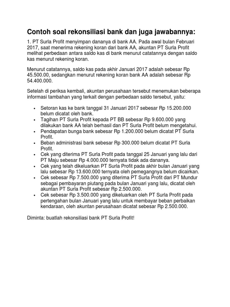 Contoh Soal Rekonsiliasi Bank Pdf Contoh Soal Rekonsiliasi