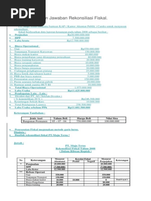 Contoh soal dan jawaban rekonsiliasi fiskal.