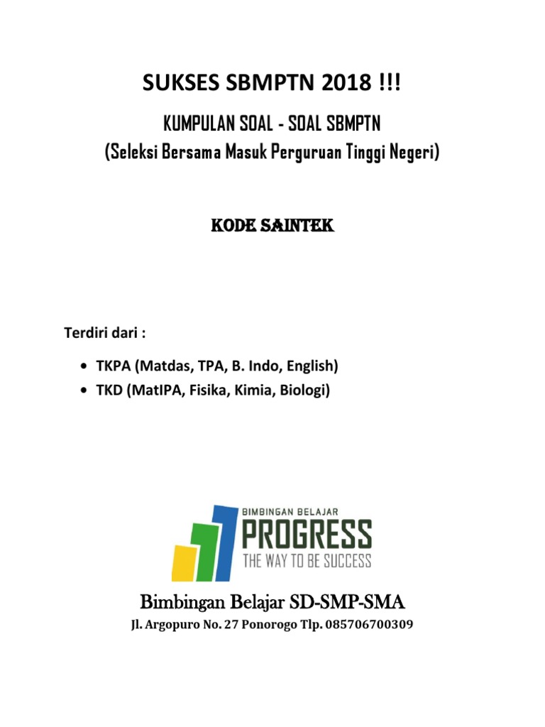Peserta sbmptn dapat memilih 3 program studi dengan ketentuan tertentu. Soal asli tkd saintek 2018. Selain itu masih ada soal tkpa yang terdiri dari soal tpa selengkapnya. Soal matematika soal kimia soal fisika dan soal biologi adalah soal yang masuk kedalam kelompok kemampuan saintek. Contoh contoh soal sbmptn diatas dihimpun dari berbagai tahun seperti contoh soal sbmptn 2018 contoh soal sbmptn 2017 contoh soal sbmptn 2016 2015 2014 dan 2013. Berisi daftar lengkap soal sbmptn 2018 untuk semua kelompok ujian dalam bentuk pdf yang bisa diunduh gratis dan disertai video pembahasan.