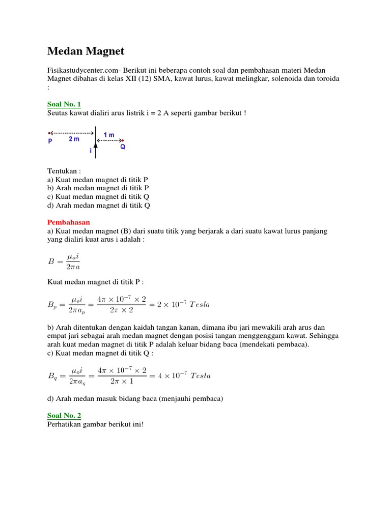Medan Magnet Rumus Beserta Contoh Soal Dan Jawaban