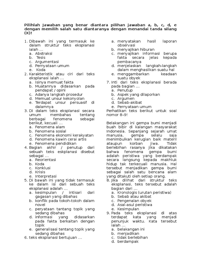 Soal pilihan ganda bahasa indonesia teks eksplanasi dan jawabannya ada sekitar 50 butir soal pgpilihan ganda bahasa indonesia tentang teks eksplanasi kelas 811 dan jawabannya yang bisa adik adik smpsmasmkma jadikan referensi dalam menghadapi ujian dari guru. Akhirnya kekuatan di dalam magma tidak bisa bertahan lama. Ya percuma saja ketika sudah membaca banyak materi namun tidak pernah mencoba melakukan latihan soal dengan cepat. Contoh soal materi procedure text dan kunci jawaban serta pembahasannya lengkap referensi soal diambil dari buku. Soal teks eksplanasi jawabannya terbaru pilihlah jawaban yang benar diantara pilihan jawaban a b c d e dengan memilih salah satu diantaranya. Berikut informasi sepenuhnya tentang contoh soal essay teks eksplanasi dan jawaban.