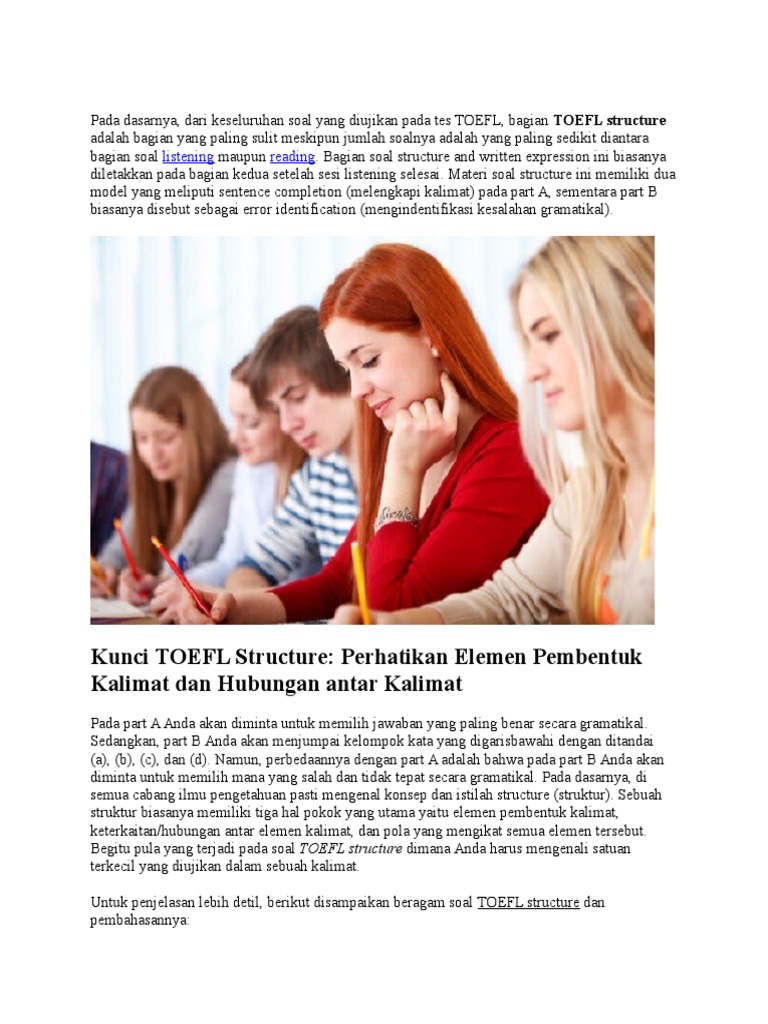 Contoh soal toefl dan pembahasannya pdf 2015. Yang bisa digunakan untuk melengkapi administarsi guru yang dapat di unduh secara gratis dengan menekan tombol download. 15 contoh soal toefl tahun 2018 lengkap dengan kunci jawaban mengukur nilai toefl dapat anda lakukan ditempat tempat tertentu contohnya insntansi atau bimbingan belajar bahasa inggris. Hari ini saya akan mengulas tentang contoh soal toefl. Contoh soal toefl dan pembahasannya pdf 2015 yang bisa anda unduh secara gratis dengan menekan tombol download. Dalam kalimat ini kata arriving sebagai kata sifat karena kata kerja sudah ada pada kata is.