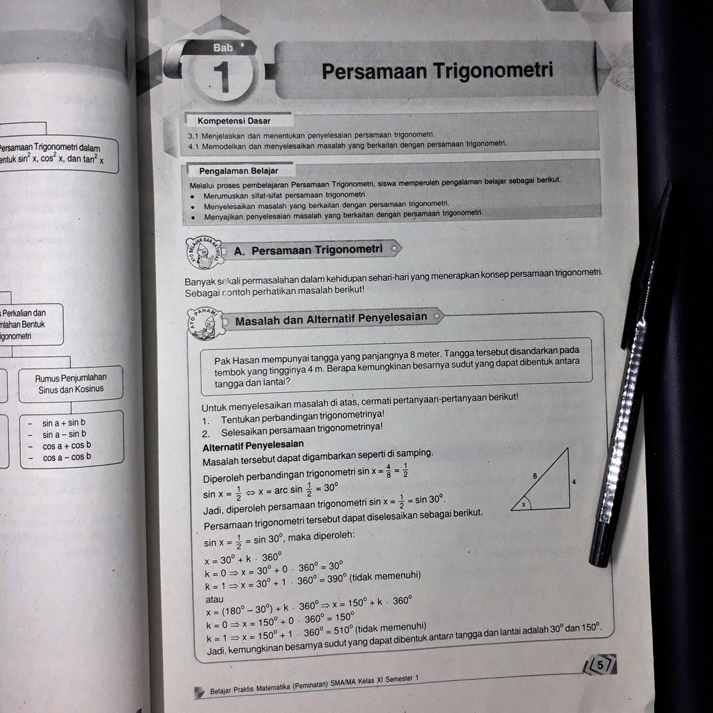 Contoh soal trigonometri kelas 11. K adalah bilangan bulat. Topik yang dibahas penggunaan rumus jumlah dan selisih sudut. Untuk lebih memahaminya lagi mari kita mulai berlatih dengan soal soal yang sudah disediakan di buku matematika kalian masing masing. Contoh soal dan pembahasan tentang trigonometri contoh soal dan pembahasan tentang rumus perbandingan sinus cosinus dan tangen contoh soal dan pembahasan tentang nilai nilai sudut istimewa contoh soal dan pembahasan tentang dalil dalil dalam segitiga contoh soal dan pembahasan tentang kali bagi jumlah dan kurang dalam trigonometri contoh soal dan pembahasan tentang penjumlahan sudut. Ada tiga macam rumus perioda yang umum dipakai untuk menyelesaikan persamaan trigonometri bentuk ini yaitu. Rumusnya yaitu 2sin ½ ab cos ½ a b jawaban.