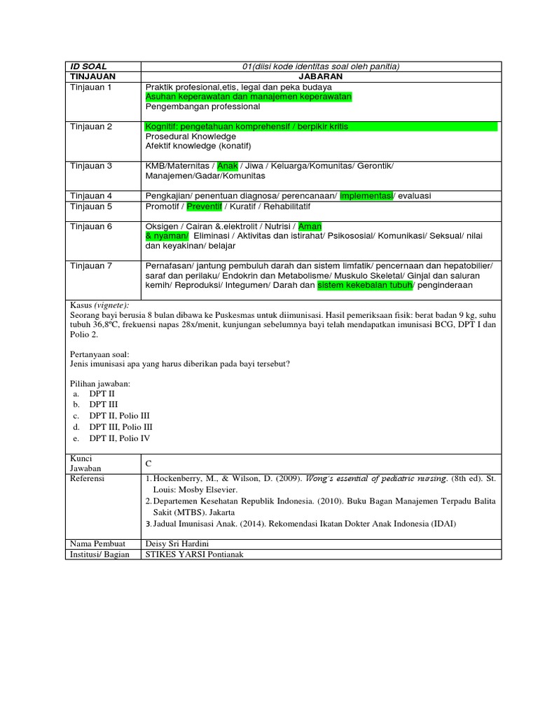 Contoh soal uji kompetensi ukom keperawatan anak dan kunci jawaban edisi 177. Sumber soal soal uji kompetensi ners diatas dirujuk pada. Soal uji kompetensi perawat bila ingin mendapatkan lebih banyak lagi soal soal latihan uji kompetensi perawatners serta tips tips siap menghadapi ukom silahkan bisa akses melalui link ini klik soal soal uji kompetensi gratis atau silahkan tinggalkan tanggapan atau pesan di kolom komentar dibawah. Ketika melakukan pengkajian post partum pada seorang klien perawat menemukan adanya bekuan darah pada lochia. 1seorang wanita yang berusia 74 tahun masuk dengan keluhan sesak saat ini perawatan hari ke 3. Pertanyaan dalam penerapan promosi kesehatan pada keluarga tindakan manakah yang sebaiknya dilakukan perawat.