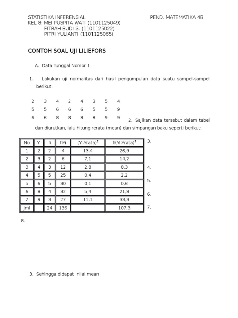 Contoh soal uji normalitas. Uji normalitas merupakan salah satu bagian dari uji persyaratan analisis data atau uji asumsi klasik artinya sebelum kita melakukan analisis statistik untuk uji hipotesis dalam hal ini adalah analisis regresi maka data penelitian tersebut harus di uji kernormalan distribusinyatentunya kita juga sudah tahu kalau data yang baik itu adalah data yang berdistribusi normal. Contoh soal perhitungan uji normalitas data secara manual. Agar memudahkan contoh soal uji normalitas menggunakan rumus chi kuadrat ini bisa anda download pada link di g saya. Merumuskan hipotesis ho. Tabel chi kuadratpdf roll. Contoh soal uji normalitaspdf 2.