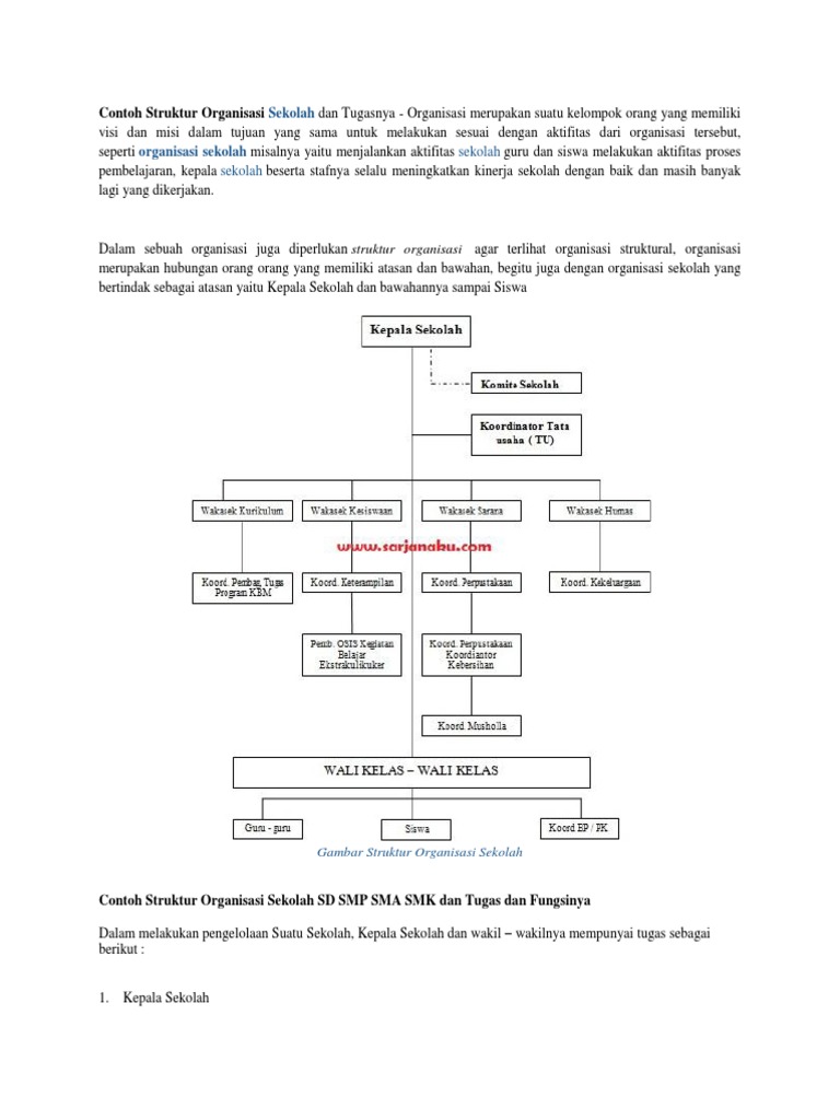 Organisasi yang merupakan suatu kelompok orang yang mempunyai visi dan misi. Penetapan dan pengesahan. Contoh sk struktur organisasi sekolah dan rincian tugasnya. Contoh struktur organisasi sekolah sekolah adalah tempat kegiatan belajar mengajar yang menjadisarana untuk menimba ilmu untuk bekal di masa yang akan datang.