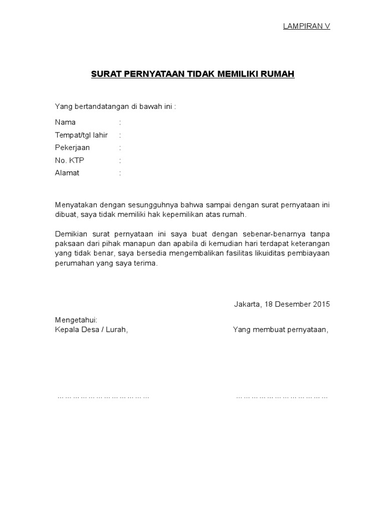 Surat keterangan sakit yang dikeluarkan oleh rumah sakit biasanya dipergunakan pada instansi resmi seperti perusahaan pemerintahan dan lembaga pendidikan jenjang tinggi. Contoh surat keterangan belum memiliki rumah untuk persyaratan kpr surat pernyataan penghasilan contoh surat pernyataan kerja oktober 2015 siger property 17 contoh surat keterangan biasa dinas kerja kuliah kpr contoh surat perjanjian sewa ruko kios pdf doc lamudi 10. Mintalah surat pernyataan belum memiliki rumah dari lingkugan rt dan rw caranya dengan meminta form surat permohonan dari kelurahan yang berisi data pribadi tujuan surat itu dibuat isi saja untuk keperluan permohonan kredit kepemilikan rumah btn.