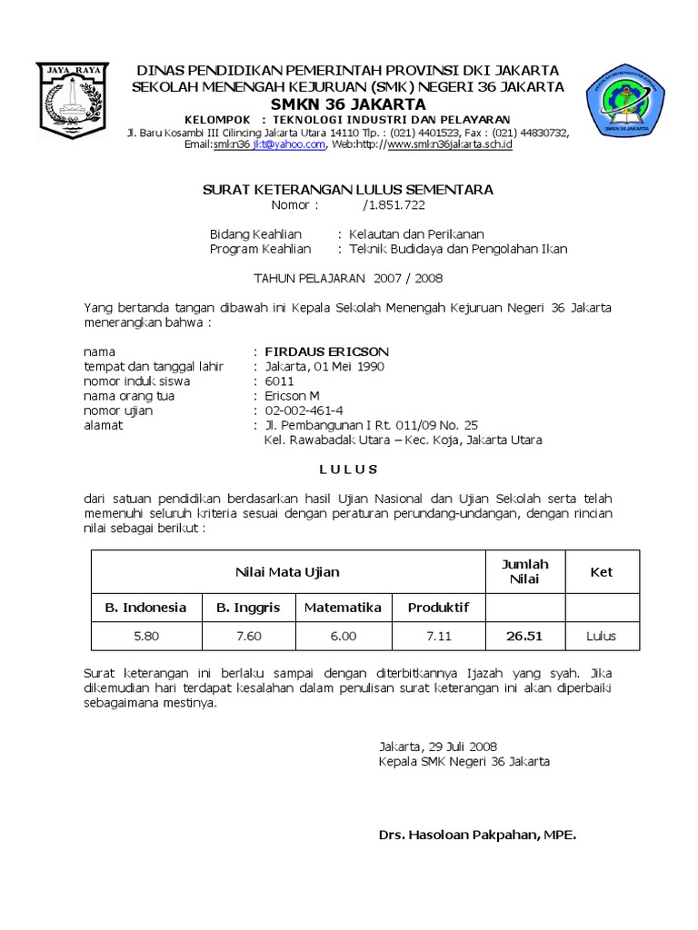 Contoh surat keterangan lulus sma. Adna dinamika mustika. Setelah anda mengunduh contoh formatnya hal yang harus diperhatikan saat melakukan pengeditan yaitu anda diharusnya mengganti semua data penting terkait dengan lembaga sekolah tempat anda mengajar. Contoh surat keterangan lulus sementara sd smp sma doc surat keterangan lulus sekolah adalah surat yang diterbitkan oleh pihak sekolah sebagai solusi dan pengganti dari ijazah yang belum keluar. Berikut adalah contoh format surat keterangan lulus sementara yang dapat dipergunakan oleh satuan pendidikan. Surat keterangan catatan kriminal skck sebanyak 1 lembar daftar riwayat hidup sebanyak 1 lembar demikian surat lamaran ini saya buat berdasarkan dengan kondisi yang sebenarnya. Contoh format surat keterangan kelulusan sd mi smp mts sma ma smk mak ini diharapkan bisa menambah referensi bagi anda yang sedang mencari informasi atau berkas seputar contoh surat keterangan kelulusan sementara contoh surat keterangan lulus smp contoh surat keterangan lulus sd 2018 download surat keterangan lulus sekolah surat keterangan lulus smp 2018 surat keterangan lulus sma 2018.