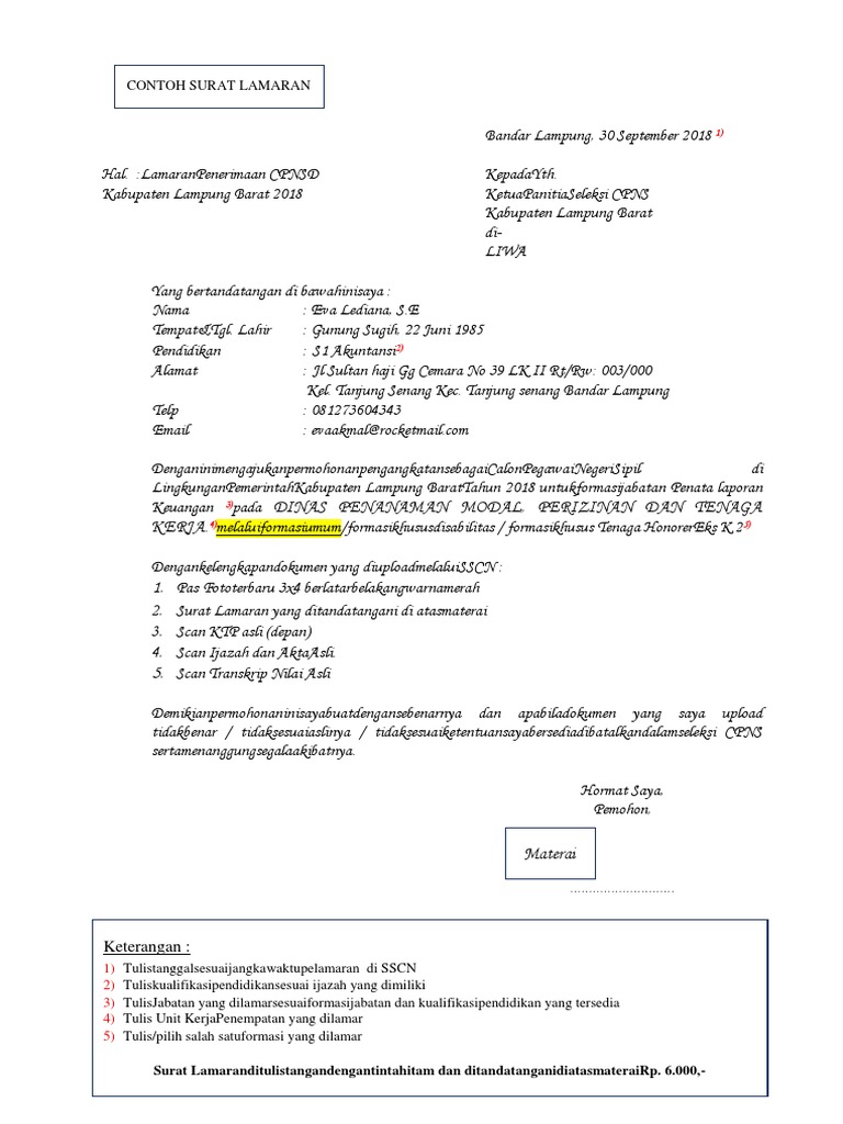 Contoh surat lamaran cpns kabupaten. Beberapa lembaga kementrian maupun nonkementrian sudah memberikan informasi secara lengkah dan jelas terkait alur. Contoh surat lamaran cpns kabupaten garut 2019 adalah merupakan format surat lamaran kerja cpns 2019 yang akan saya bagikan kali ini untuk anda terutama bagi anda yang berencana mendaftar cpns tahun 2019 di lingkungan pemerintah kabupaten garut. Sebenarnya calon peserta seleksi cpns juga bisa mengunduh melalui images for contoh surat lamaran cpns 2018. Nah jika anda saat ini sedang mencari format surat lamaran cpns kabupaten garut tahun 2019 silahkah simak terus halaman ini sampai selesai. Tribun timurcom ini contoh surat lamaran cpns 2019 instansi kabupaten kota. Contoh surat lamaran kerja cpns terbaru 2015 buat anda yang ingin melamar kerja di cpns maka membuat surat lamaran tidak boleh asal buat saja dan ada setruktur yang harus anda ketahui juga maka dengan ini kami blog contoh surat dan proposal memberikan info ini buat anda semua supaya anda bisa di terima lamaran kerja cpns anda nantinya.