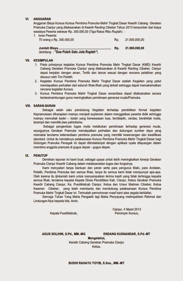 Kami mohon maaf atas segala kekurangan dan kesalahan yang telah kami lakukan. Contoh laporan laporan merupakan bentuk pemberitahuan atau penyampaian berita dari seorang bawahan terhadap atasannya akan suatu kejadian atau kegiatan. Contoh laporan kegiatan jika kita bekerja atau memiliki kegiatan di organisasi atau instansi misalnya kita pasti melakukan berbagai kegiatan. Laporan kegiatan ini biasanya dibuat oleh peserta yang mengikuti kegiatan tersebut atau orang yang menyelenggarakan kegiatan. Kegiatan pramuka perkemahan bakti logo instansi disusun oleh. Atas perhatian dan kerja sama yang baik kami sampaikan ucapan terima kasih.
