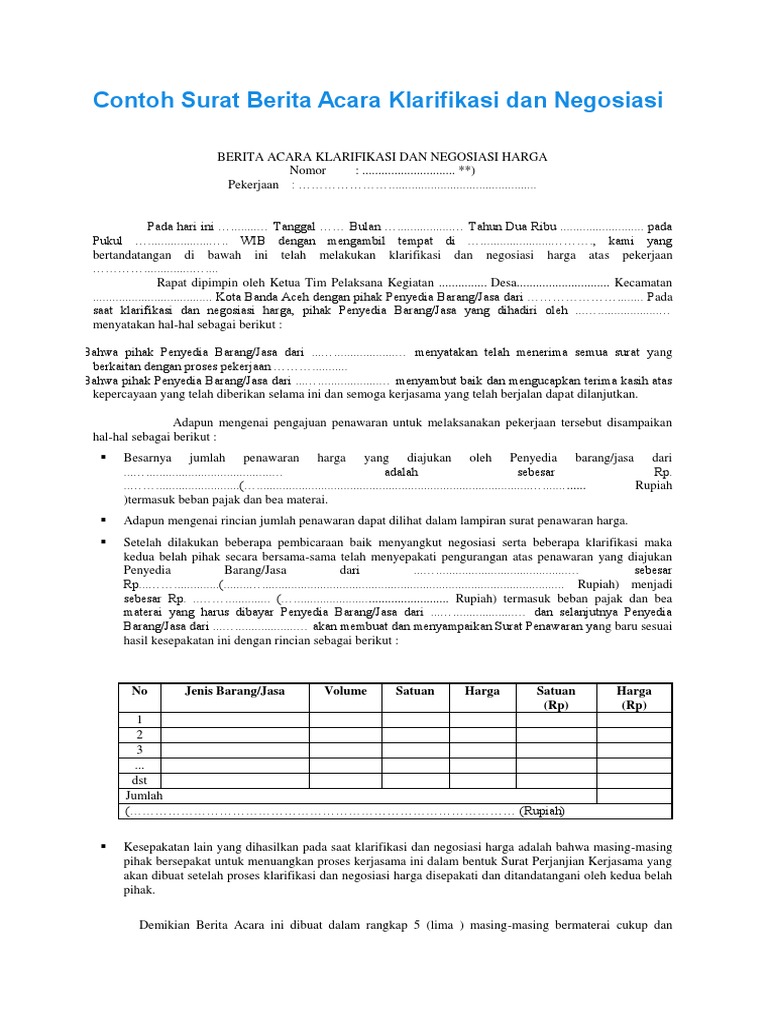 Negosiasi kerjasama ke pemerintah. Contoh surat negosiasi penawaran harga 3. Contoh surat niaga penawaran barang 3. Contoh surat nikah siri dari kyai 3. Contoh teks negosiasi berbagai kasus. Kami informasikan bahwa panitia pengadaan peralatan lab.