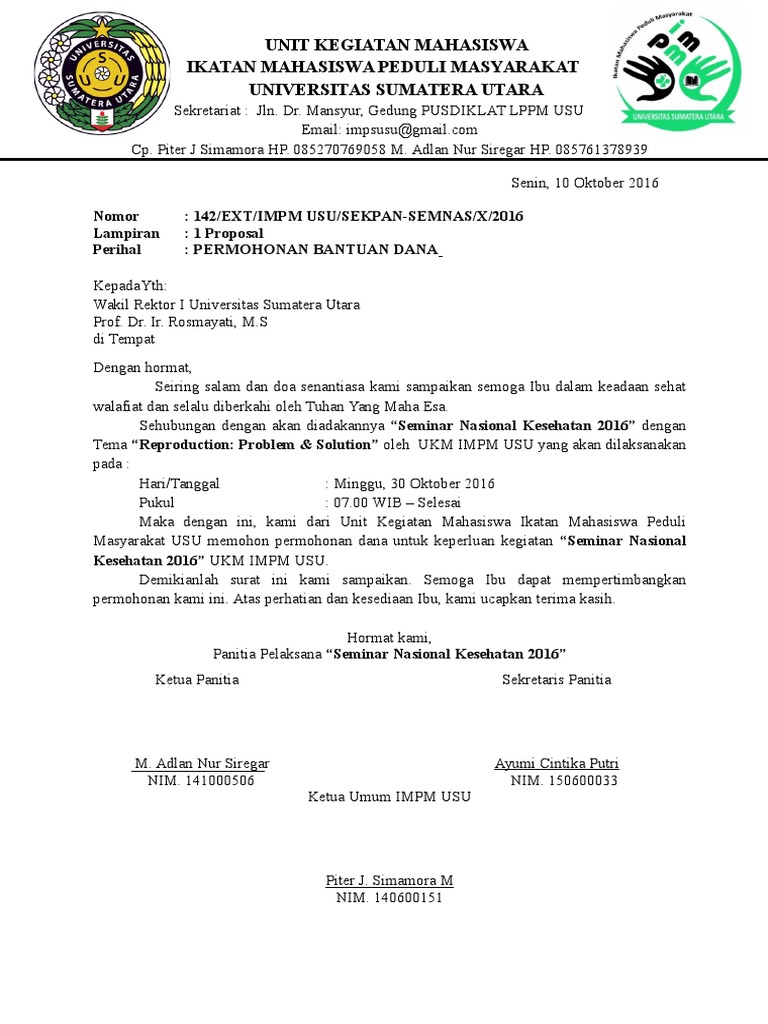 Surat permohonan dana merupakan salah satu contoh surat resmi yang berfungsi sebagai surat untuk meminta bantuan dana secara tertulis dari suatu instansi ataupun organisasi kepada orang banyak umum baik di dalam ruang lingkup tertentu atau masyarakat luas. 15 contoh surat permintaan barang jasa dan informasi seiring dengan perkembangan zaman dan kecanggihan teknologi media komunikasi juga ikut berkembang dan semakin mudah digunakan. Barangkali anda sedang mencari cara menulis surat permohonan yang efektif. Untuk mengatasi masalah sumber dana ini dapat dilakukan dengan iuran antaranggota. Salah satu faktor yang biasanya sering menjadi kendala adalah masalah yang berkaitan dengan finansial atau sumber dana. Surat permohonan biasanya dipakai oleh seseorang organisasi instansi atau badan usaha untuk mengajukan suatu permohonan secara formal kepada pihak lain.