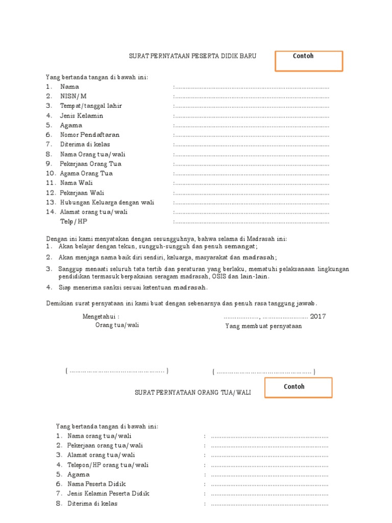 Contoh surat pemberitahuan orang tua wali murid kegiatan sekolah sebuah dunia pendidikan sekolah banyak sekali kegiatan kegaitan di dalamnya. Semua kegiatan yang ada dalam dunia sekolah semua bersifat positif semua bersifat pembelajaran. Mencantumkan kesanggupan dalam surat untuk menerima hukuman jika terbukti bersalah. Contoh surat pernyataan siswa sekolah mempunyai tata tertib atau aturan aturan yang berlaku bagi siswanya maupun gurunya kali contoh surat pernyataan siswa diperuntukan untuk siswa siswi yang melanggar tata tertib sekolah atau aturan aturan sekolah supaya membuat efek jerah kepada siswa yang melanggar tata tertib sekolah atau aturan aturan contoh surat pernyataan siswa sangatlah simpel dan. Contoh surat izin orang tua pernah ngga kamu tiba tiba sakit saat mau berangkat sekolah. Contoh surat pernyataan orang tua siswa baru dan untuk kegiatan surat pernyataan orang tua merupakan sebuah surat yang dibuat yang menginformasikan bahwa orang tua tersebut telah setuju dan sepakat terhadap ketentuan atau persyaratan yang berlaku kepada ia maupun anaknya.