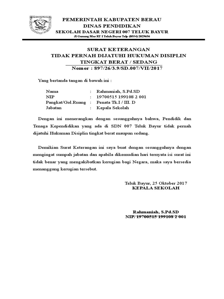 Contoh surat pernyataan tidak pernah dijatuhi hukuman pidana. Namun untuk urusan komunikasi perusahaan maupun berbagai lembaga maupun instansi pemerintah penggunaan surat masih merupakan sesuatu hal yang wajib untuk dilakoni. Selain itu surat pernyataan biasanya dibuat secara sengaja hal tersebut dibuktikkan dengan adanya sebuah kata kata yang. Untuk mendownload contoh format surat pernyataan tidak pernah dijatuhi hukuman disiplin tingkat sedang berat klik disini doc. La ode ndibale nip. Surat pernyataan tidak pernah dijatuhi hukuman disiplin tingkat berat atau sedang dalam 1 tahun terakhir nomor. Contoh surat pernyataan tidak pernah di hukum atau penjara tindak pidana kejahatan paling singkat 5 lima tahun surat pernyataan merupakan sebuah surat yang dibuat oleh seseorang yang mana biasanya surat pernyataan selalu di barengi dengan adanya sebuah materai.