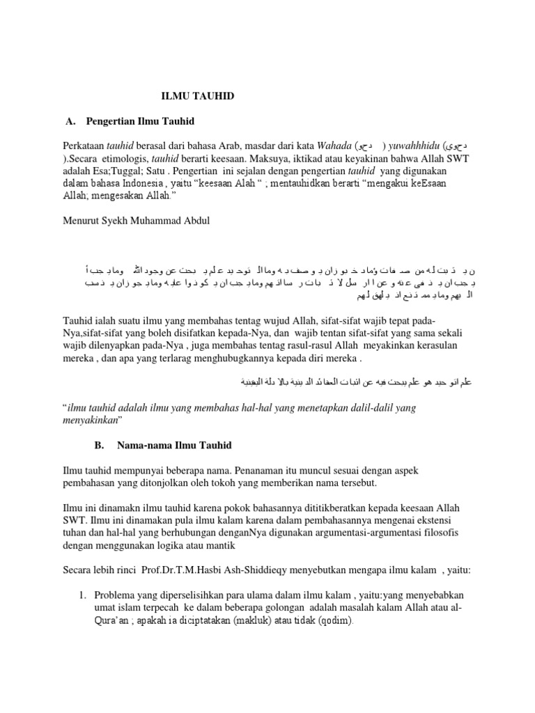 Allah tidak membutuhkan segala sesuatu. Latar belakang tauhid adalah pengertian macam rububiyah dan uluhiyah dosenpendidikancom tauhid arab توحيد adalah konsep dalam aqidah islam yang menyatakan keesaan allah. Dalam bahasa al quran allah adalah ghani absolute. Allah adalah wujud yang tidak bergantung pada apa dan siapa pun dalam bentuk apapun. Contoh tauhid rububiyyah dalam kehidupan sehari hari mengeesakan allah swt sebagai satu satunya pencipta pemberi rezeki dan pengatur alam semesta. Segala sesuatu bergantung pada nya dan membutuhkan pertolongan nya.