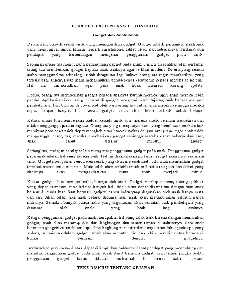 Secara singkat teks diskusi adalah sebuah teks yang memberikan dua pendapat berbeda mengenai suatu hal satu pro dan satu kontra yang menyebabkan kedua belah pihak menjadi saling membicarakan masalah yang sedang dipersoalkan atau bisa juga didefinisikan sebagai tulisan yang mengulas sebuah masalah isu dengan disertai argumenpendapat baik yang mendukung maupun yang menentang isu. Di dalam melakukan diskusi terdapat beberapa aturan yang harus kita penuhi yaitu senantiasa menghargai dan menghormati perbedaan pendapat dikarenakan pada umumnya disetiap diskusi pasti akan adanya perbedaan pendapat. Contoh teks diskusi apa yang dimaksud dengan diskusipengertian diskusi menurut kamus ilmiah populer diartikan sebagai pembahasan bersama mengenai suatu masalah saling tukar pikiran bahas membahas tentang suatu hal. Contoh teks diskusi teks diskusi yaitu salah satu bentuk teks yang berisi 2 pendapat. Semuacontoh yoo para pembaca kali ini saya akan membagikan 3 contoh singkat teks diskusi tentang internet teknologi dan lingkungan beserta strukturnya yang merupakan salah satu materi pembelajaran bahasa indonesia yang mungkin teman teman butuhkan untuk mengerjakan tugasnah tanpa perlu banyak basa basi lagi simaklah beberapa contoh dari teks diskusi singkat dibawah ini.
