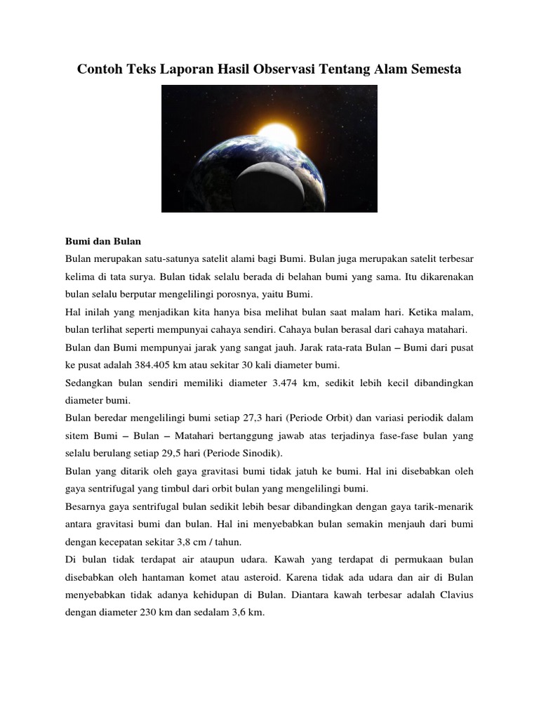Contoh teks laporan hasil observasi tentang alam. Singkat kata teks laporan hasil observasi adalah sebuah teks yang. Sedangkan untuk teks hasil observasi memiliki pengertian yaitu isi teks yang menjelaskan suatu informasi baik itu informasi tentang hewan tanaman fenomena alam hasil karya manusia dan fenomena sosial yang sesuai dengan fakta. 5 contoh teks laporan hasil observasi alam bencana lingkungan wisata buatlah contoh teks laporan hasil observasi tentang alam. Dosenpendidikancom observasi adalah salah satu teknik dalam teknik pengumpulan data yang digunakan dalam suatu penelitian tertentu. Baiklah kami akan menjawab pertanyaan tersebut dengan membagikan artikel tentang contoh teks laporan hasil observasi tentang bencana alam keindahan alam semesta lingkungan dan wisata alam. Sedangkan untuk teks hasil observasinya mempunyai pengertian isi teks yang menjelaskan tentang suatu informasi baik itu hewan tanaman fenomena alam hasil karya manusia serta fenomena sosial yang sesuai.