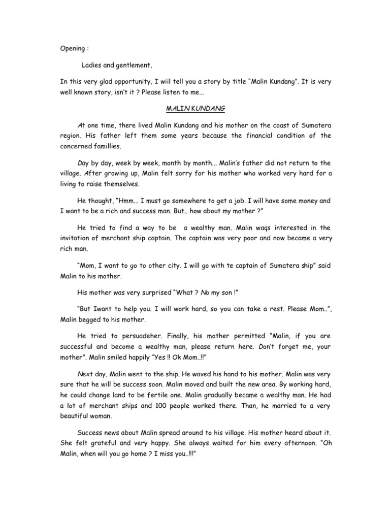 Contoh story telling bahasa inggris tentang malin kundang. They were living in poverty.