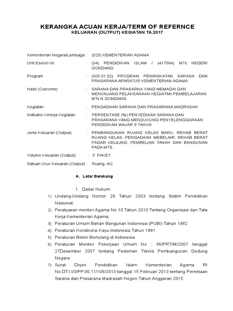 Contoh tor rab dan surat pernyataan contoh term of reference tor download disini contoh rencana anggaran biaya rab download disini contoh surat pernyataan download disini. Kaktor per keluaran kegiatan layanan perkantoran kementerian negaralembaga. Peraturan pemerintah nomor 21 tahun 2004 tentang penyusunan rencana kerja dan anggaran kementerian negaralembaga pasal 7. Apakah anda punya contoh kak pembangunan pasar moder dan kak rehabilitasi pasar modern. Peraturan menteri dalam negeri nomor 51 tahun 2015. Data pendukung lainnya adalah dokumen yang mendukung tor dan rab dapat berupa keterangan mengenai spesifikasi barang berikut harganya analisis biaya satuan gambar dan sebagainya yang dapat dipertanggungjawabkan oleh kl.
