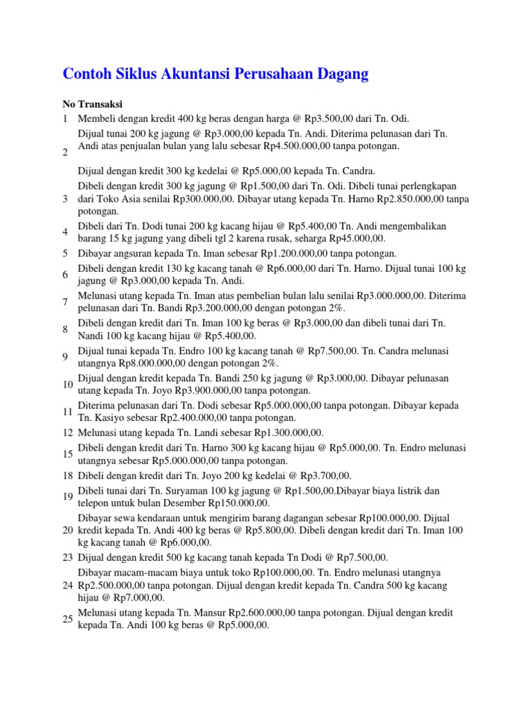 Berikut ini adalah contoh transaksi jurnal umum perusahaan dagang yang merupakan kumpulan file dari berbagi sumber jurnal nasional tentang soal soal transaksi perusahaan dagang terbaru 2017 pdf yang bisa bapakibu gunakan dan diunduh secara gratis dengan menekan tombol download biru dibawah ini. 112019 melowdy membuka kantor candra advokat dengan menyerahkan. Mengerti cara menganalisa kegiatan transaksi keuangan. Namun jika transaksi sudah cukup banyak dan sering terjadi transaksi yang sama maka penggunaan jurnal umum sudah tidak efisien lagi. Menurut van horne dan wachowicz 2005193 laporan laba rugi merupakan ringkasan dari pendapatan dan biaya perusahaan selama periode tertentu diakhiri dengan laba atau kerugian bersih untuk. Berikut contoh laporan laba rugi dari perusahaan dagang yang bisa anda simak.
