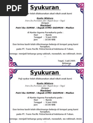 Download template undangan walimatul ursy tahlil dan aqiqah dengan. Kali ini admin akan memberikan contoh format penulisan syukuran pernikahan yang biasanya diletakan pada kotak nasi berkat.