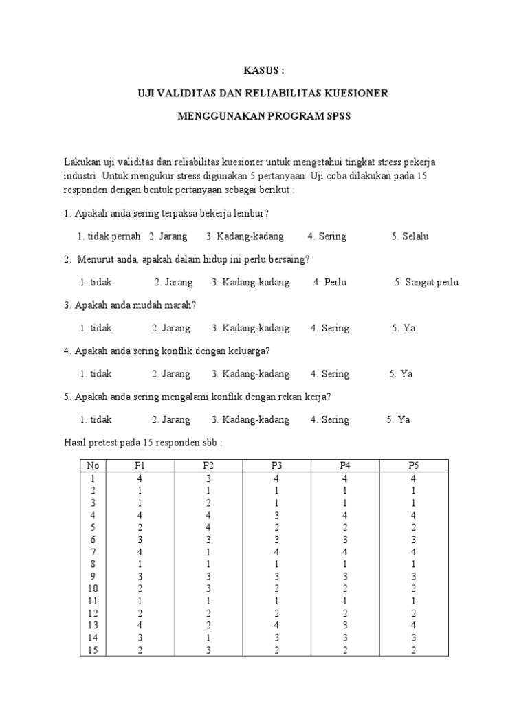 Validitas dan reliabilitas bertujuan untuk megetahui sejauh mana kuesiner yang dibuat tepat dan dapat diandalkan untuk sebuah penelitian. Rumus uji reliabilitas teknik non belah dua non split half technique. 2 instrumen tersebut adalah validitas dan reliabilitas. Artikel uji validitas dan uji reliabilitas dengan spss ini menggunakan korelasi product moment. Pak saya mau tanya. Anastasia dan urbina 1998 pengertian validitas menurut anastasia dan urbina adalah mengenai apa dan seberapa baik suatu alat tes dapat mengukur sedangkan reliabilitas merujuk pada konsistensi skor yang dicapai oleh orang yang sama ketika diuji berulang kali dengan tes yang sama pada kesempatan yang berbeda atau dengan seperangkat butir butir ekuivalen equivalent items yang berbeda.