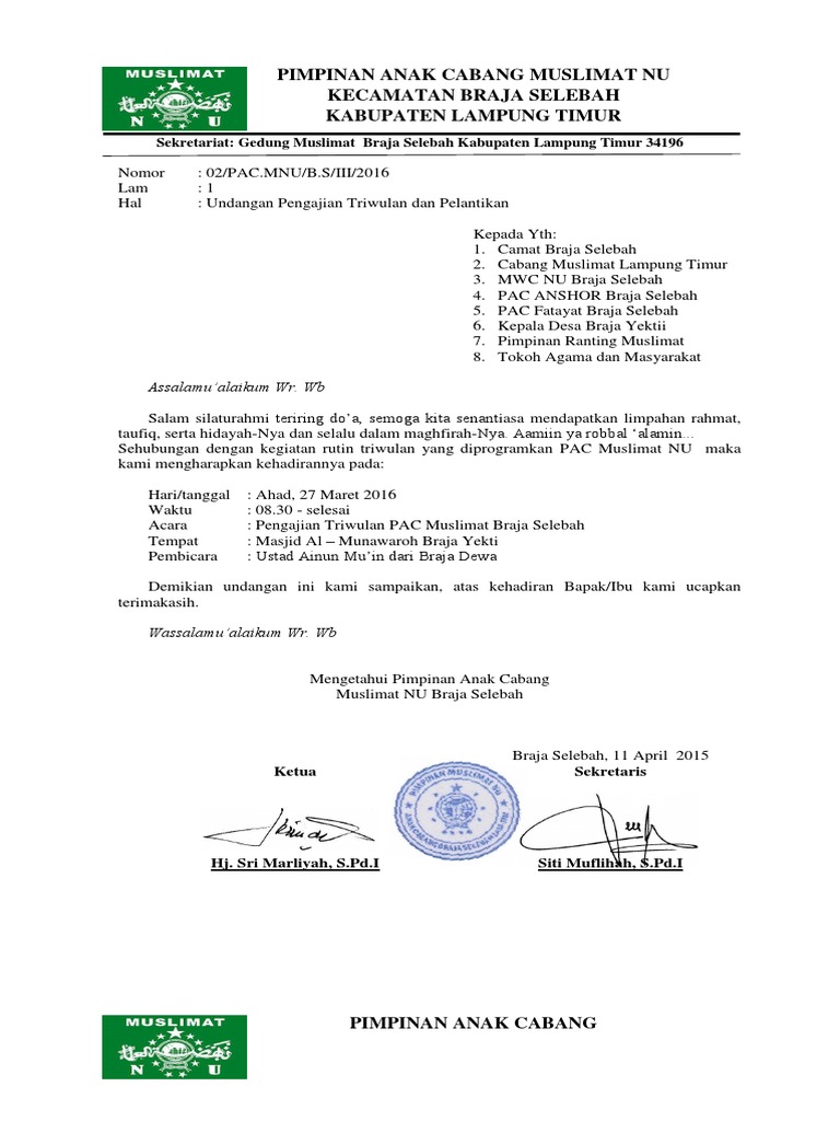 Hampir seluruh umat islam akan memperingati yang namanya isra miraj nabi muhammad saw. Karena berasal dari lembaga maka surat ini dinyatakan sebagai surat resmi yang harus menggunakan bahasa yang formal baikbaku sopan padat dan jelas. Semoga dapat bermanfaat dan dapat menjadi bahan referensi serta pengetahuan mengenai pembuatan surat undangan pengajian ini secara profesional. Dimana umumnya acara tersebut akan diisi dengan kegiatan pengajian umum ataupun kegiatan keislaman lainnya. Surat undangan dapat berupa surat resmi maupun tidak resmi. Bila menemukan kesulitan mendesain bingkai dan menyusun kalimat.